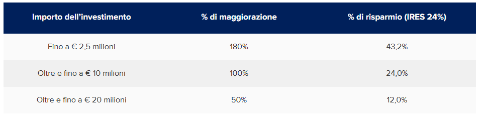 La misura segna un ritorno, seppur in forma rinnovata, alla logica della maggiorazione extracontabile del costo fiscalmente ammortizzabile, con l’obiettivo di incentivare gli investimenti tecnologici avanzati e, in parte, quelli destinati all’autoproduzione di energia da fonti rinnovabili, nel rispetto di vincoli europei sempre più stringenti in materia di aiuti di Stato.