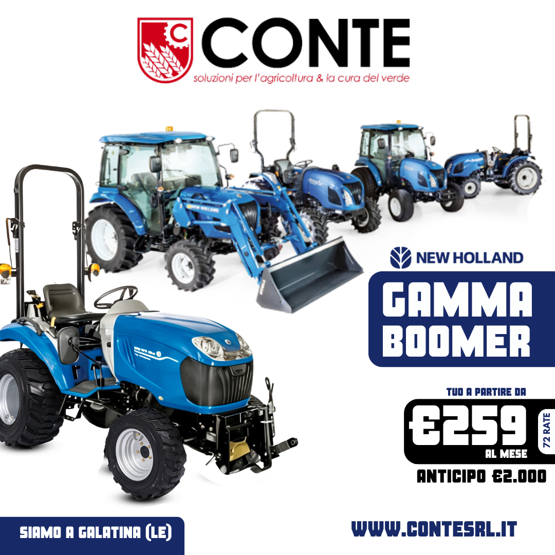 Scopri i trattori Boomer, compatti e versatili, pronti ad affrontare ogni sfida sul campo. La gamma Boomer di New Holland offre 7 modelli progettati per garantire affidabilitร e v